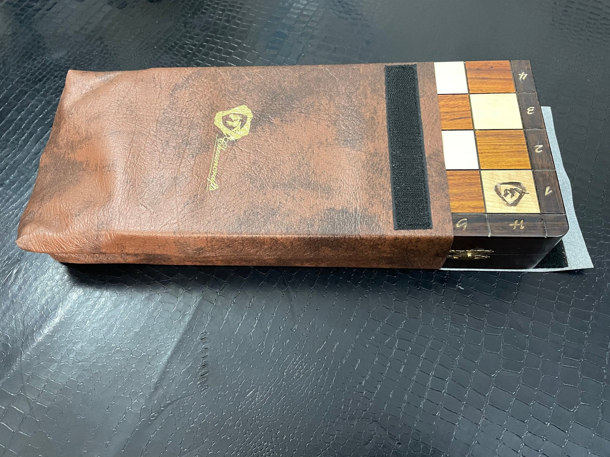 The chess set comes with a complimentary Brown Leather cover-bag to keep this beautiful travel chess set safe from scratches & easy to carry.(AS SEEN IN LAST IMAGE)