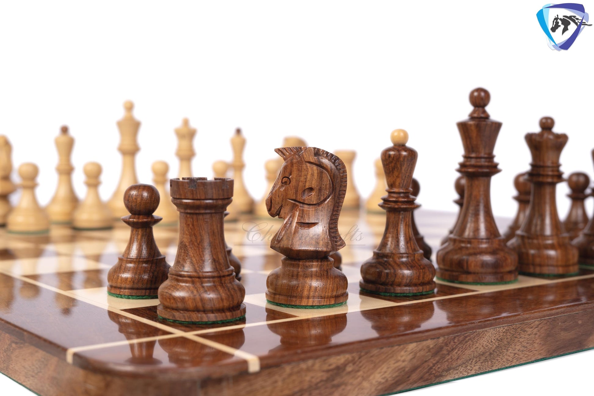 ChessNcrafts 1950s' Fischer Dubrovnik Chess Pieces in Sheesham( golden rosewood) & Boxwood.