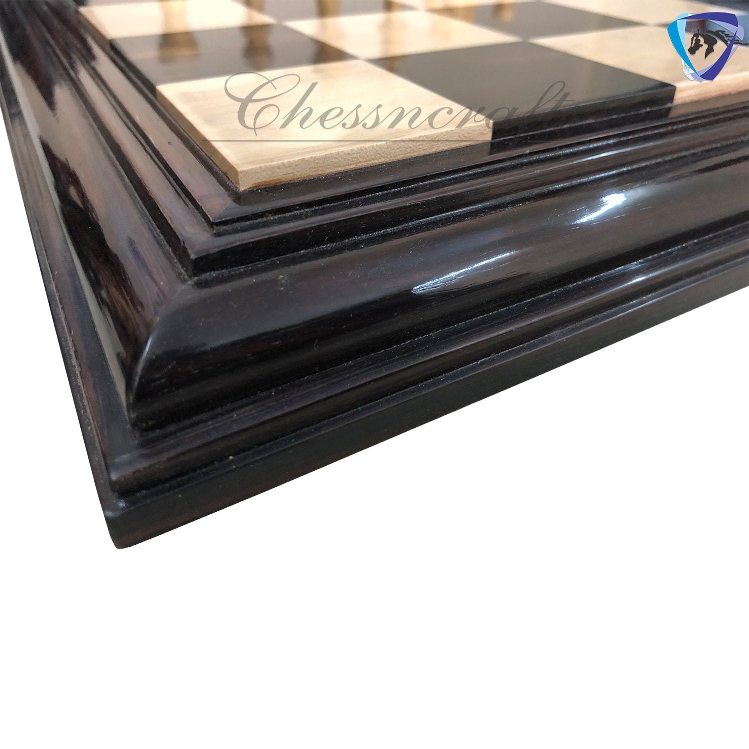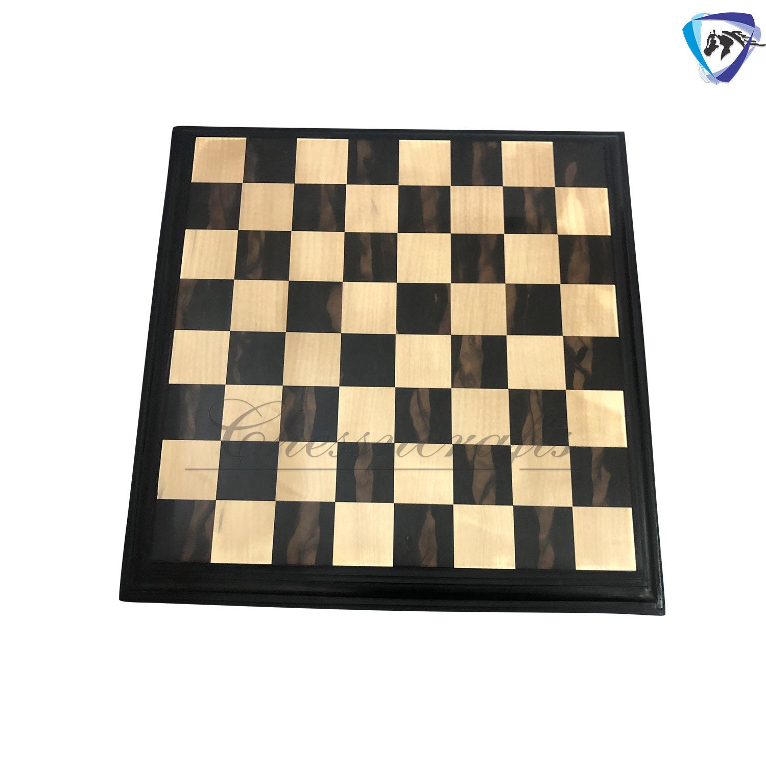 21" & 23" Ebony wood chess board STEPS BORDER ELEVATED Super fine smooth polish. Exclusive unique grain ebony wood