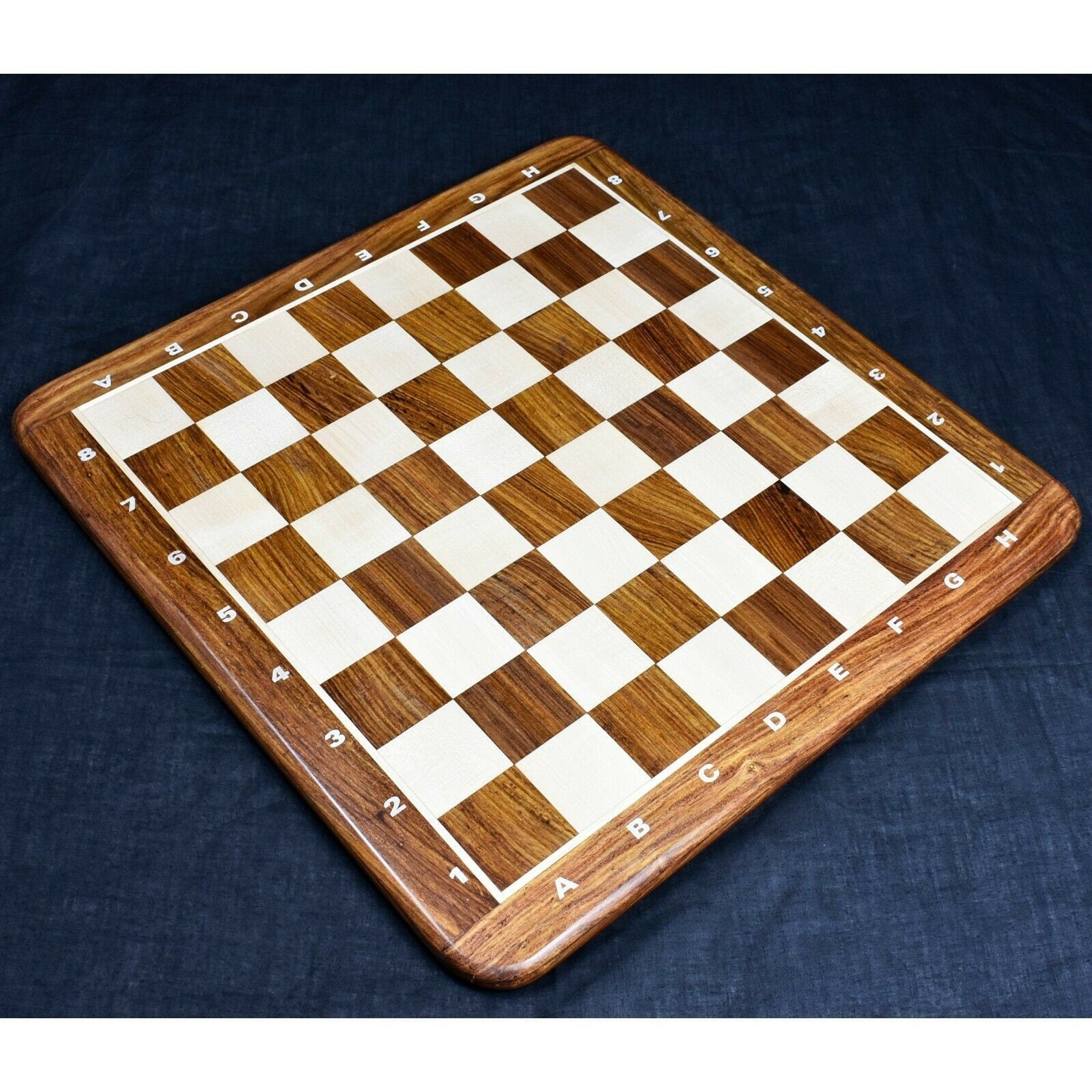 21" wooden(sheesham) flat chess board with Notations on borders Rounded corners Lacquered polish- Golden Rosewood & Maplewood.
