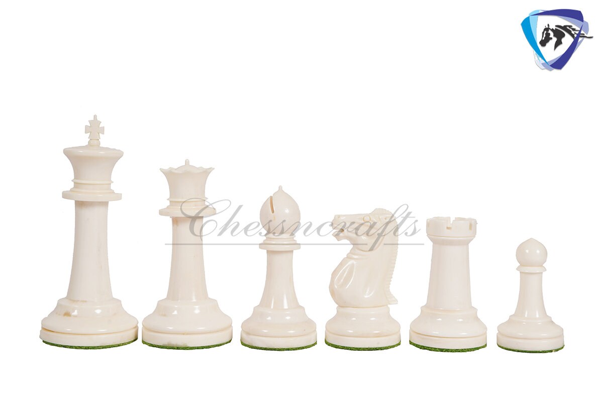 KING HEIGHT: 4" WITH BROAD BASE- SOLID BONE CHESS SET(made by very rare broad camel bone)- FREE STORAGE BOX LEATHER.