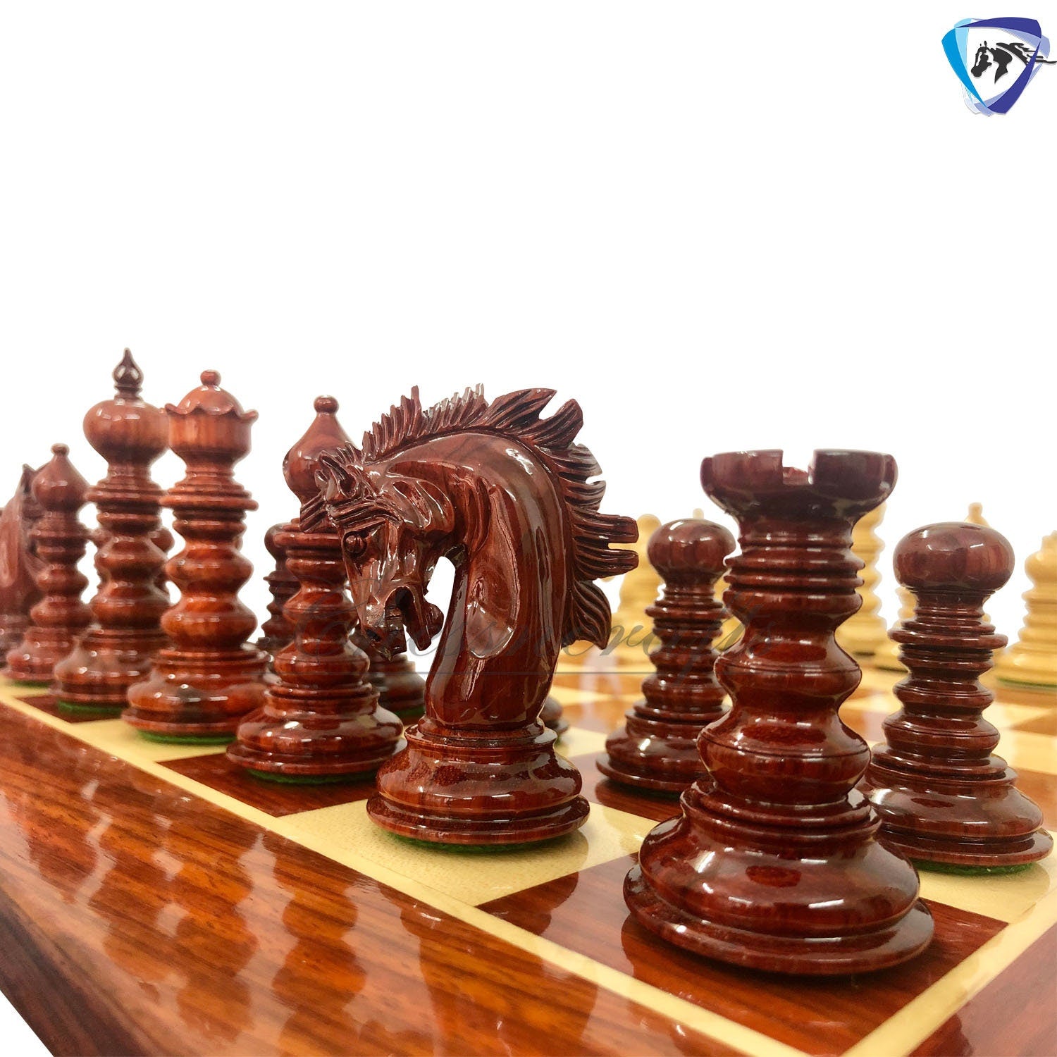 4.4" Staunton Ebony wood / Bud Rosewood Chess pieces Set- St. Petersburg-Savano Luxury Artisan Series- Heavy Weighted 2 Extra queens