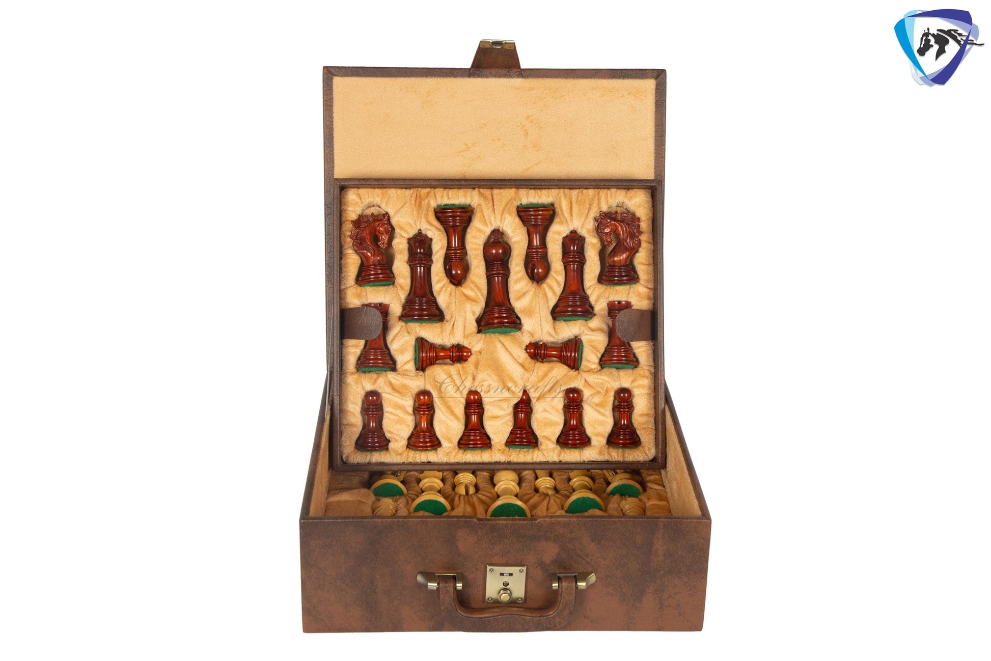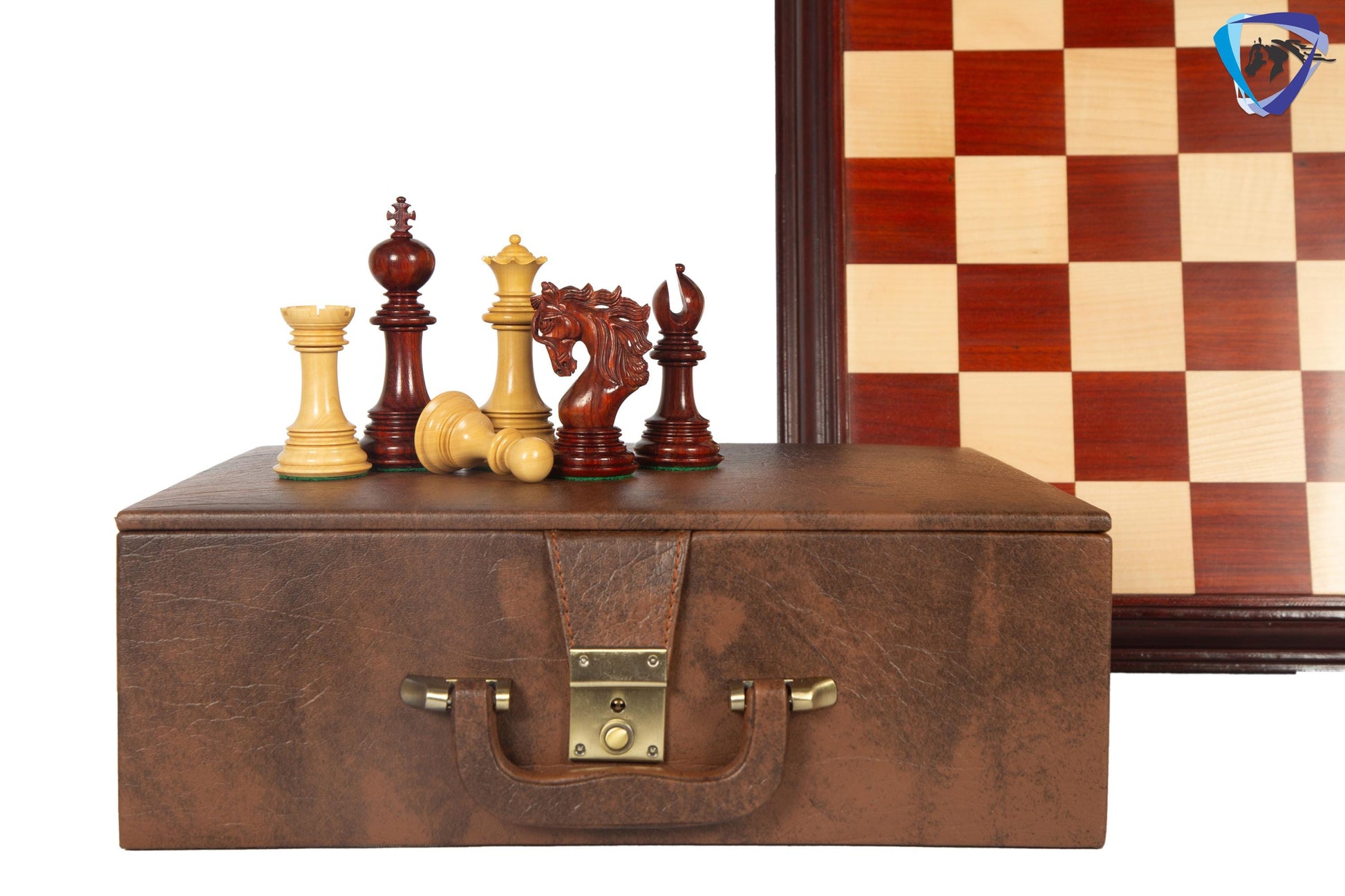 4.5" Staunton Bud Rosewood Chess pieces Set- BENEVENTO - Triple Weighted + 21" Bud Rosewood Chess Board + Leatherette storage Box.