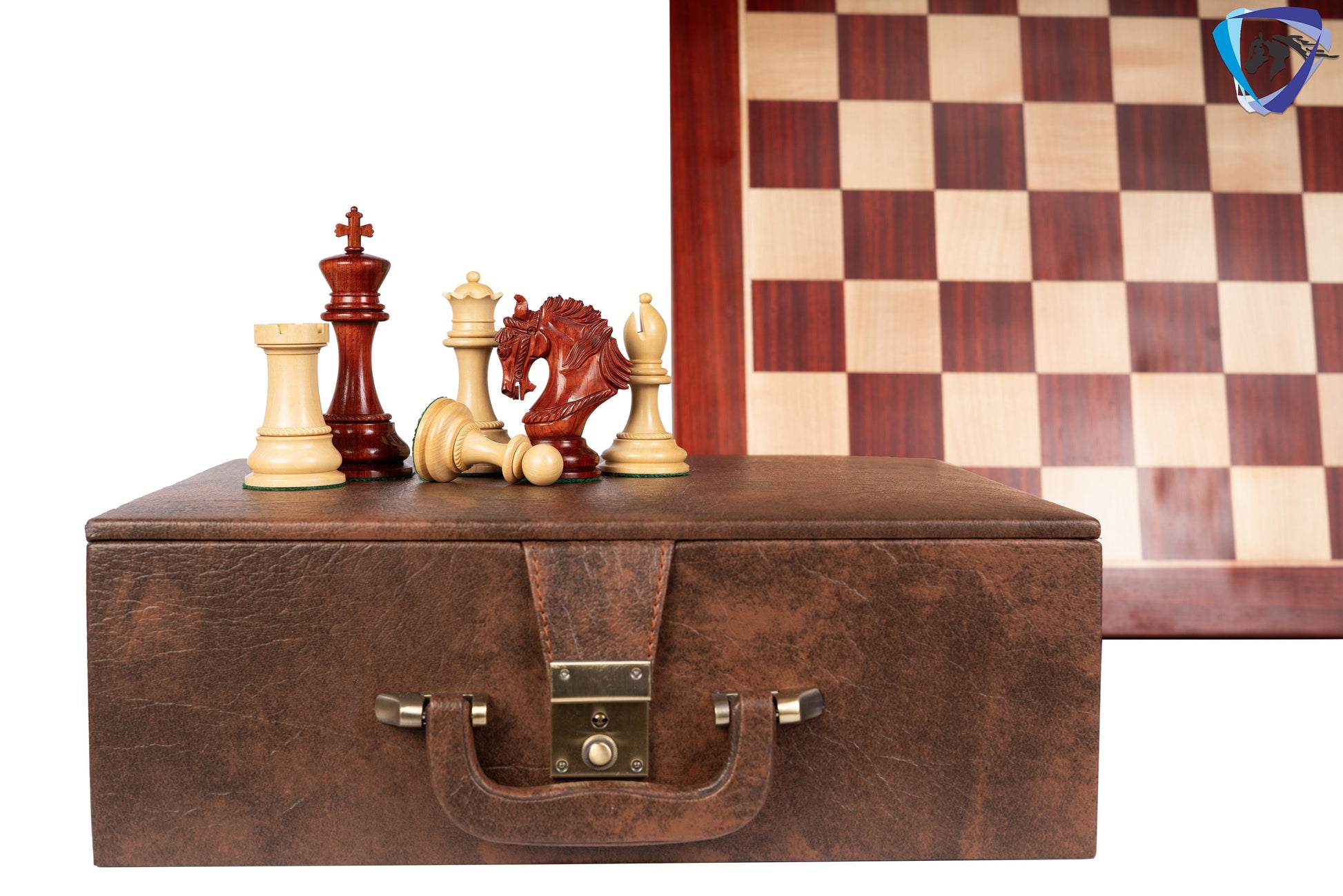 4.5" Staunton Bud Rosewood Chess pieces Set- Luxury KING ARTHUR-Triple Weighted + 21" Bud Rosewood Chess Board(55mm) + Leather Storage Box