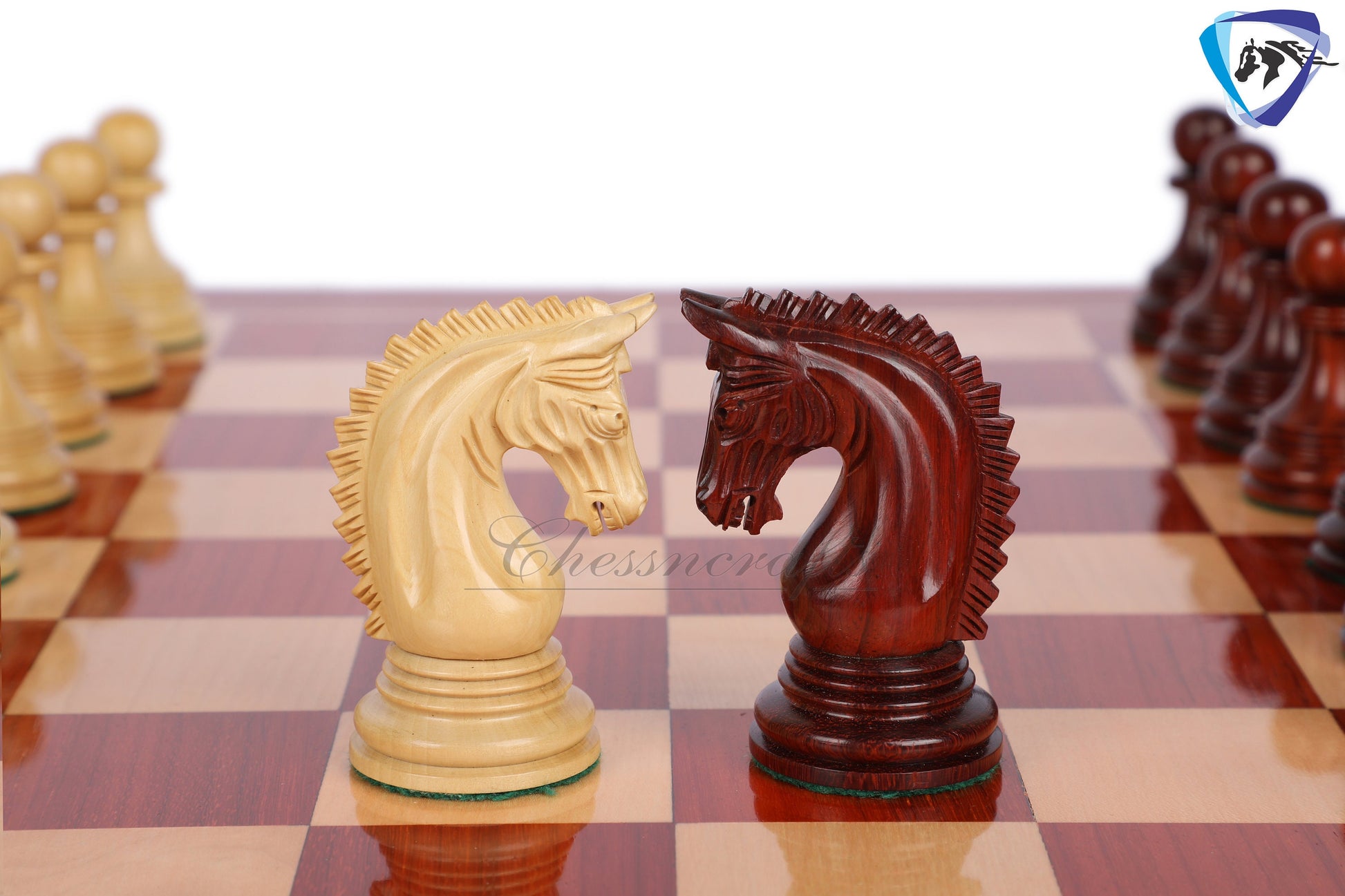 Chessncrafts' PATTON LUXURY STAUNTON chess set depicts simplicity & is the most sophisticated chess set in the LUXURY COLLECTION made of premium BUD ROSEWOOD (AFRICAN PADAUK)