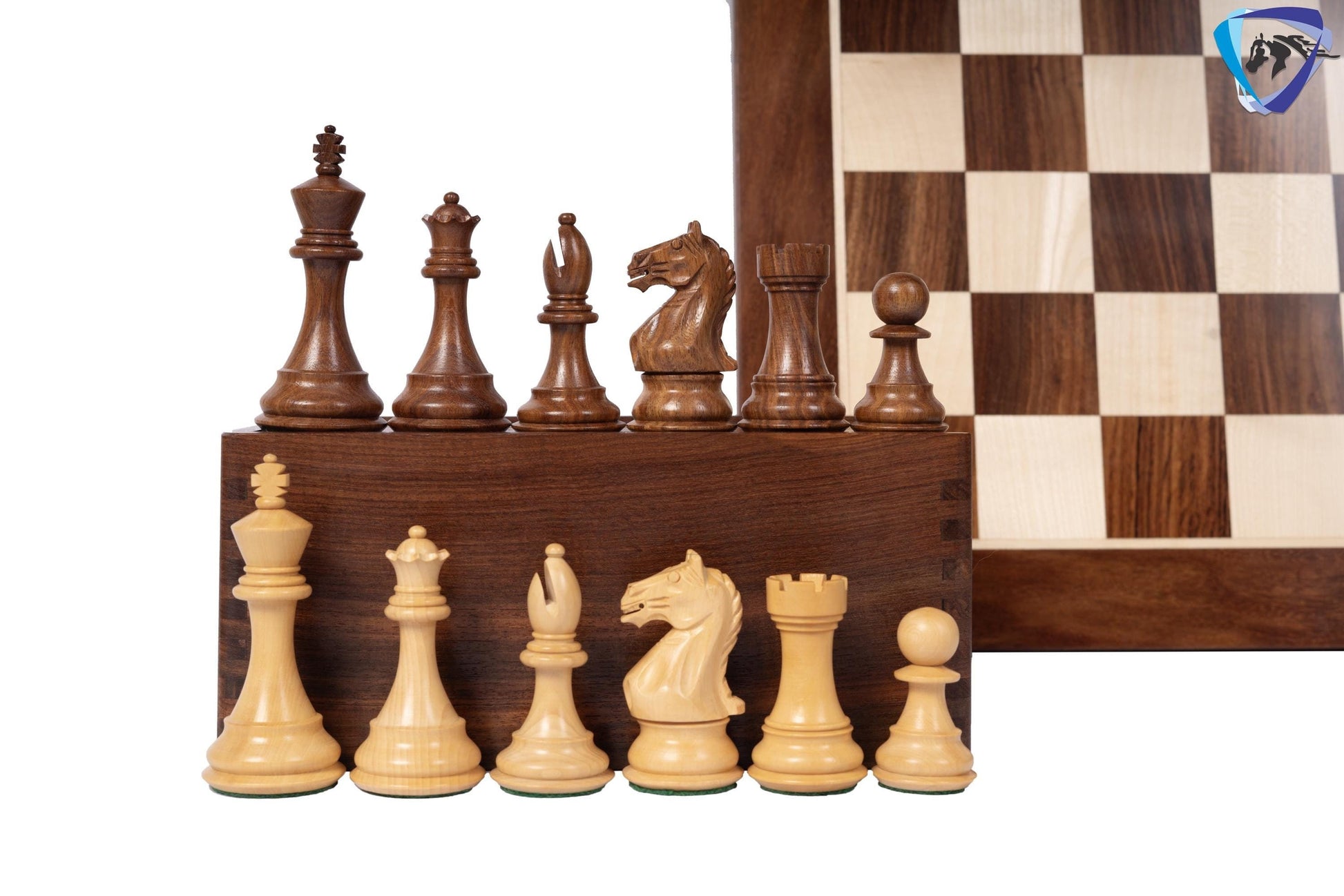 4" Fierce Knight Staunton Chess pieces Set in Golden Rosewood + 21" Golden rosewood(sheesham) Chess Board + Solid wood chess Storage Box