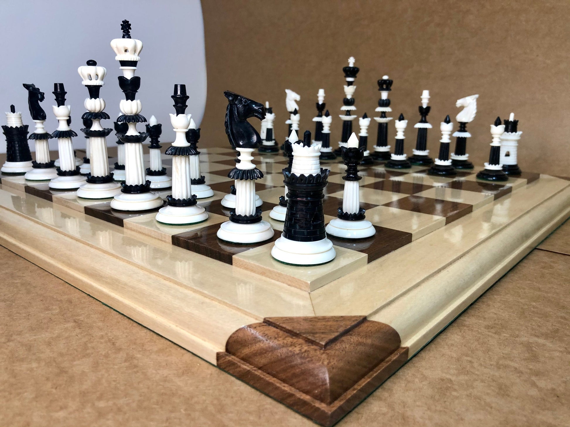 COMBO 6" Camel bone chess set hand carved unique collector vintage chess pieces- LUXURY FLOWER Chess Pieces Set + 21" Maplewood Chess Board.