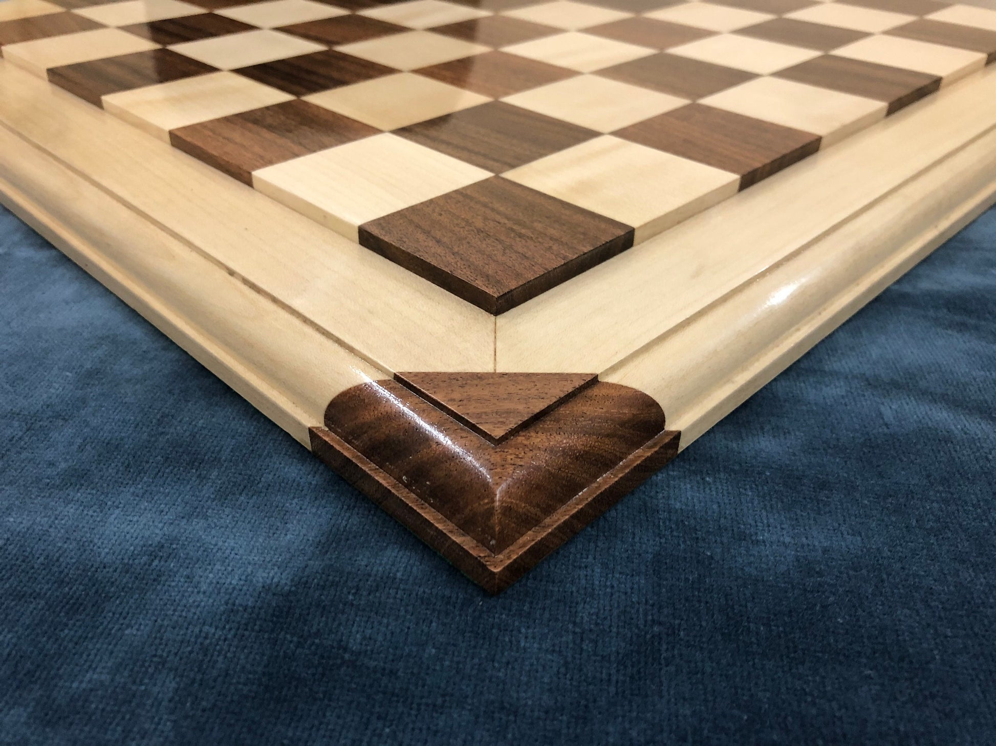 Flat Solid wood(sheesham) Chess board made by Inlaid technique of each square with Geometric perfection & super fine glossy lacquered surface polish.-All done by Hand.