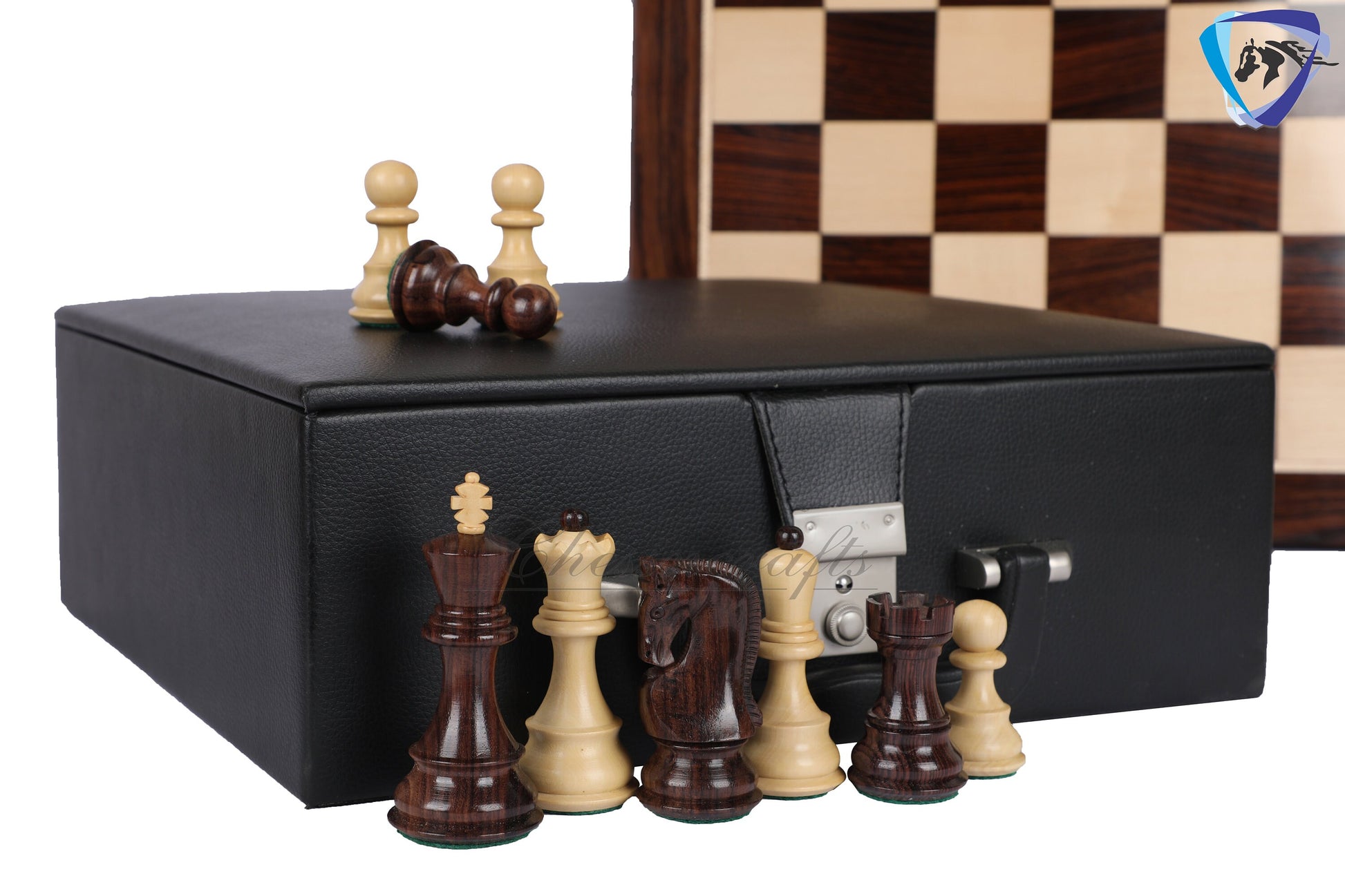 COMBO of 3.9" Russian Zagreb Chess Pieces Set in Rosewood & Boxwood Weighted 4Q + 19" Rosewood Chess Board SQ: 51mm+ Leatherette Storage Box